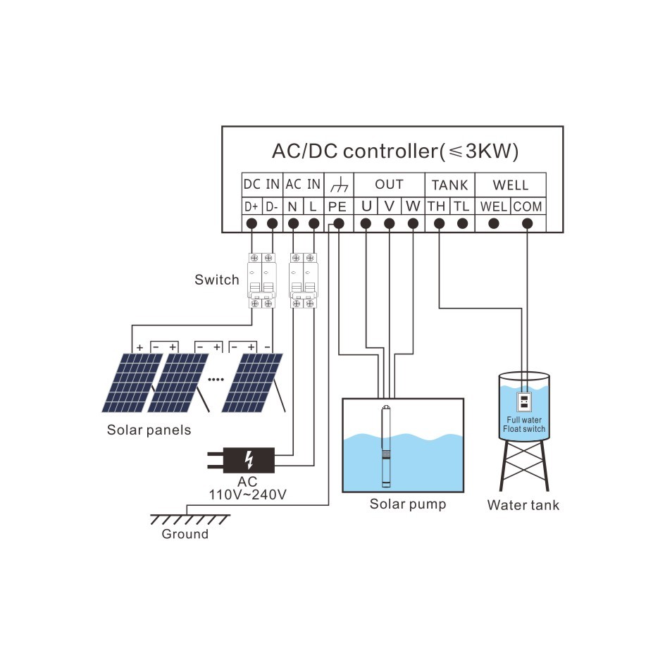 3"AC/DC &Wide voltage brushless solar pump with S/S impeller - stainless impeller, MPPT controller, brushless motor. Good for farm livestock ,off-grid household water supply and agricultural irrigation.