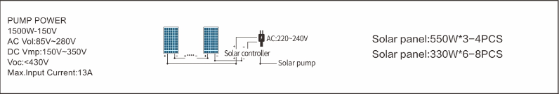 | 3HJPC8-90-150-1500-A/D(HV) | 85V-280V(/) | 150V-350V | 1500W | 8m³/h | 90m | 1.5" | 2m | <450V | <430V |